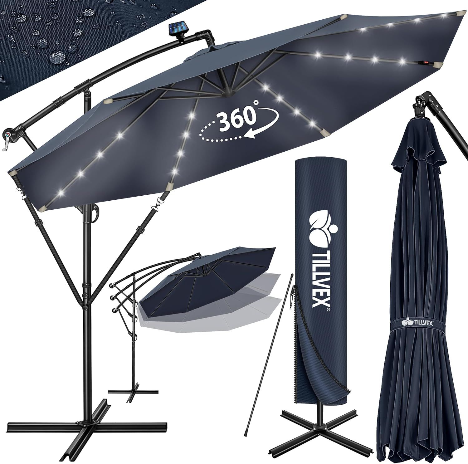 Ombrellone da Giardino LED 300 cm con Manovella e Base, Solare e Impermeabile