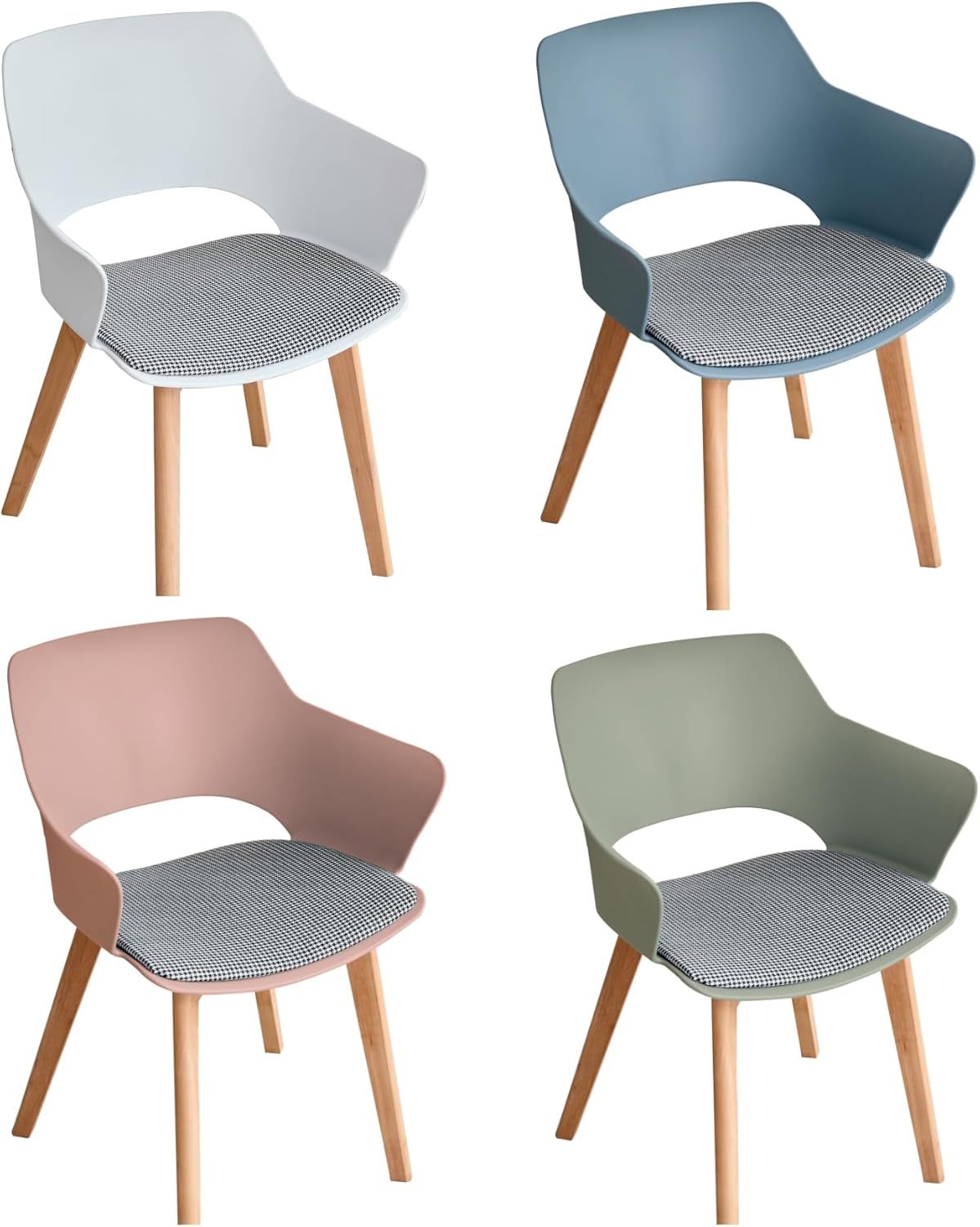 Set di 4 Sedie Nordiche Imbottite in Lino con Braccioli e Gambe in Faggio